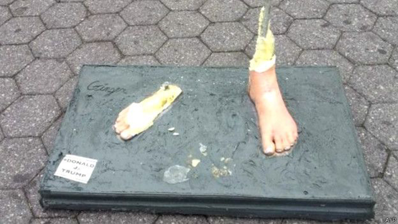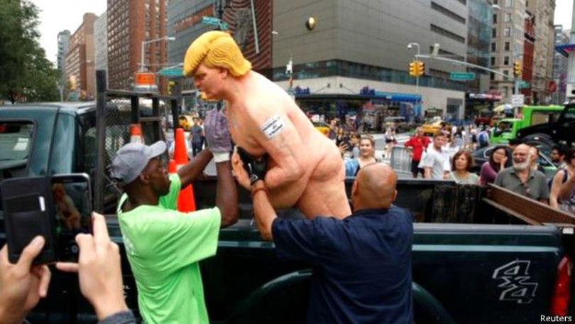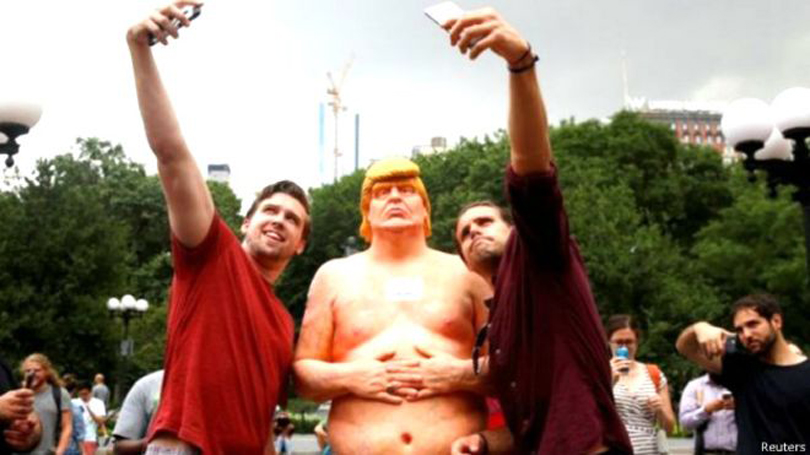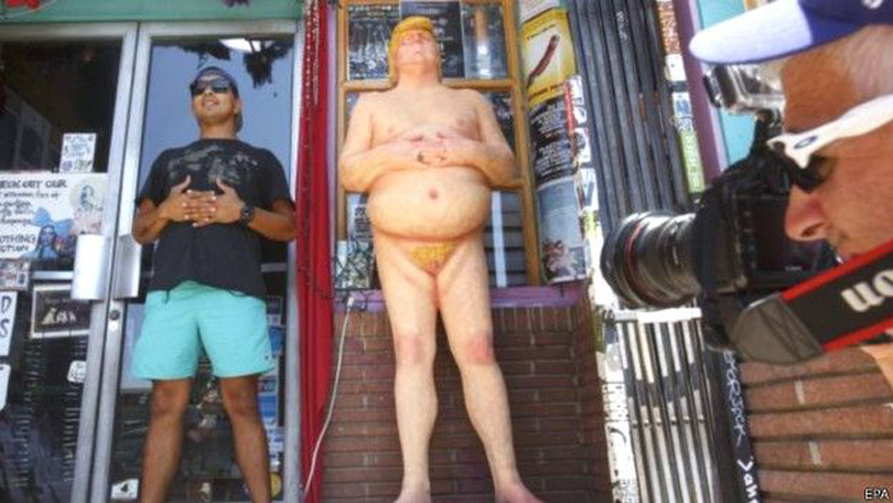राष्ट्रपतिको चुनाव नजिकिँदै जाँदा ट्रम्पलाई बदनाम गर्न बनाइएका यस्ता निर्वस्त्र प्रतिमाबारे ट्रम्पले कुनै प्रतिक्रिया दिएका छैनन् । यस्तो नांगो प्रतिमा हेर्न नागरिकहरुको भीड लाग्ने गरेको अन्तर्राष्ट्रिय समाचार संस्थाहरुले जनाएका छन् ।
