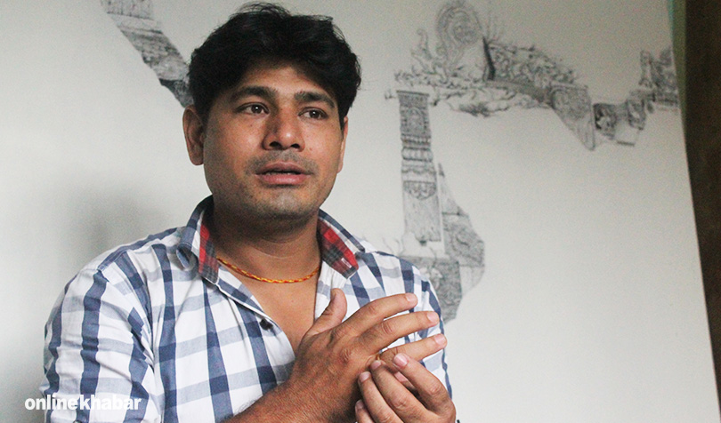 ‘द्वन्द्वको चेपुवामा परेर त्यत्रा मान्छे मरेका थिए, असहाय, विधवा र टुहुरा भएका थिए,’ ३८ वर्षीय कलाकारले ब्लड पेन्टिङ गर्नुको कारण खुलाए, ‘त्यति बेलाको समय चित्रमा उतार्न रगतभन्दा उपल्लो तहको माध्यम नै देखिनँ ।’